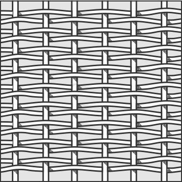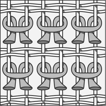 絡め方には「ペルシャ結び」と「トルコ結び」があります。ペルシャ結びは、2本の縦糸に対し、横糸を1本にくるりと回し、もう1本の縦糸に引っ掛ける状態になっています。トルコ結びは横糸を2本の縦糸の外側から回し、2本の間から横糸を出していきます。