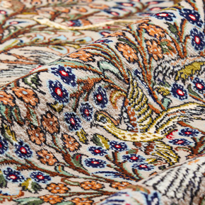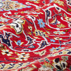 手作業の良さは素材や織りの経過を人の目で見、確かめながら作れる事。特に絨毯に使う羊毛や絹の天然素材、天然染料による染め糸では素材の細さ太さ、色の具合など必ずしも均一ではありません。絨毯の柄や全体のバランスを見ながら作られる絨毯は、一つとして同じものはないのです。