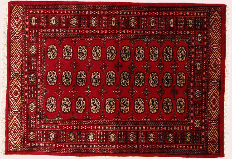 「メダリオン」…ペルシャ絨毯でよく見られる、円形もしくは円に近い形の模様を中心に配置したもの。加えて四隅にも同様の模様を配置している。