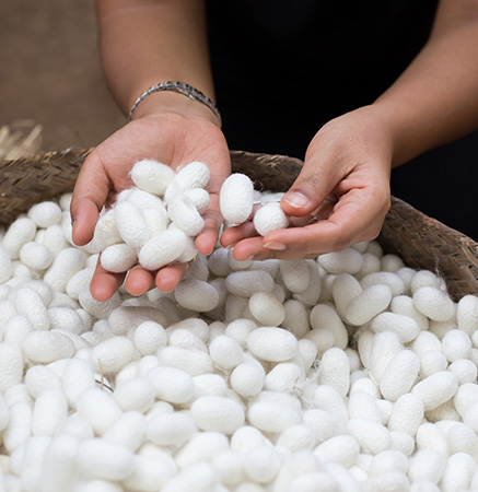 アミールが扱う中東の手織り絨毯は、その素材を羊毛と絹の天然素材のみに限っています。羊の毛を刈り、毛を撚り、糸にするところから、現地の人の手を介し、その触感や質の善し悪しを身体で感じながらものづくりをしているのです。