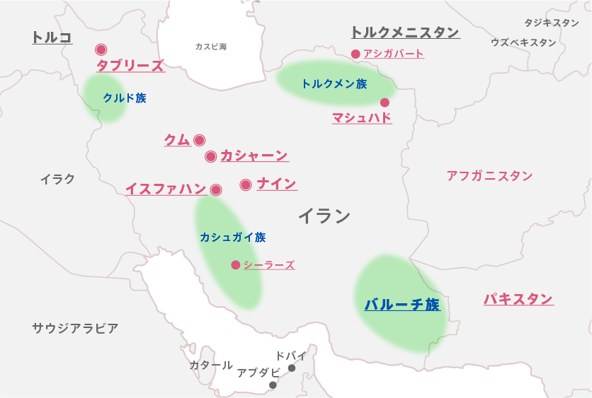ペルシャ絨毯と一言で言っても、様々な種類があります。産地によっても少しずつ異なる特徴があります。気候風土や民族の違い、それぞれの土地での使われ方の違い、絨毯の生産地としての歴史など様々な背景を持つものです。こうした背景を知ることで、より絨毯の世界に楽しみを見いだすことでしょう。